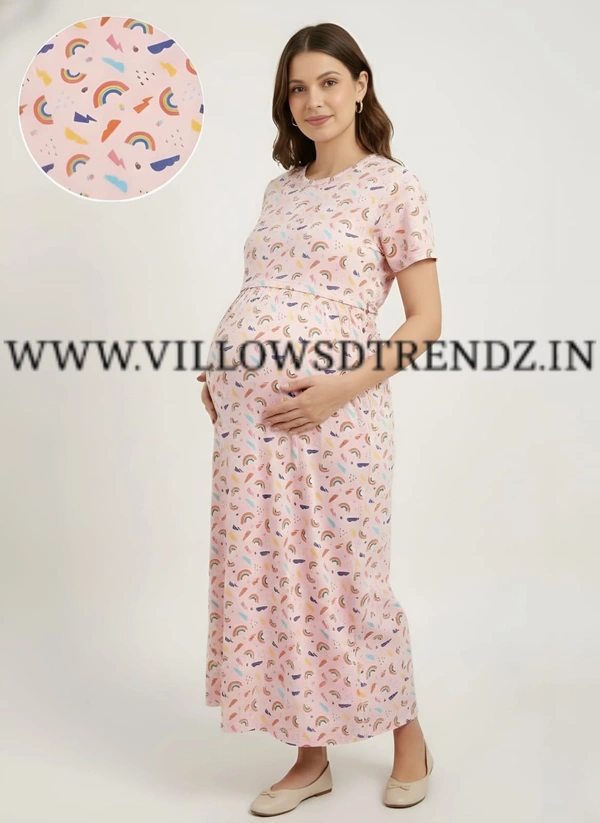 Maternity Feeding Lounge Wear | Pullup Gown| Zipless| Full Length| 52 inches height| Pink | MFG300028
