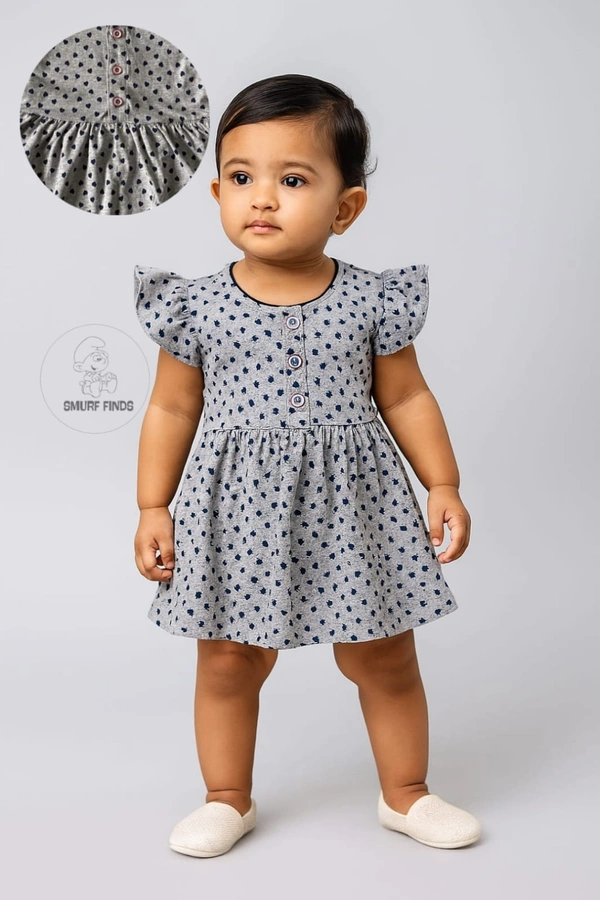 Premium Cotton Printed Organic Cotton Frock for Girls| 100% Cotton| Front Openable Buttons| Ash| SMFCKIY12306