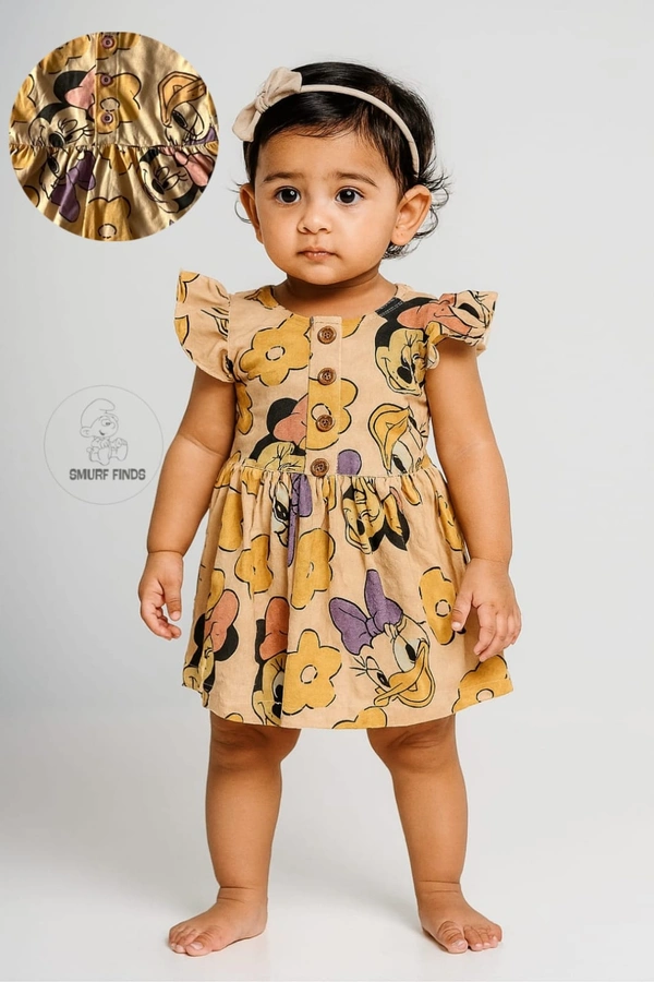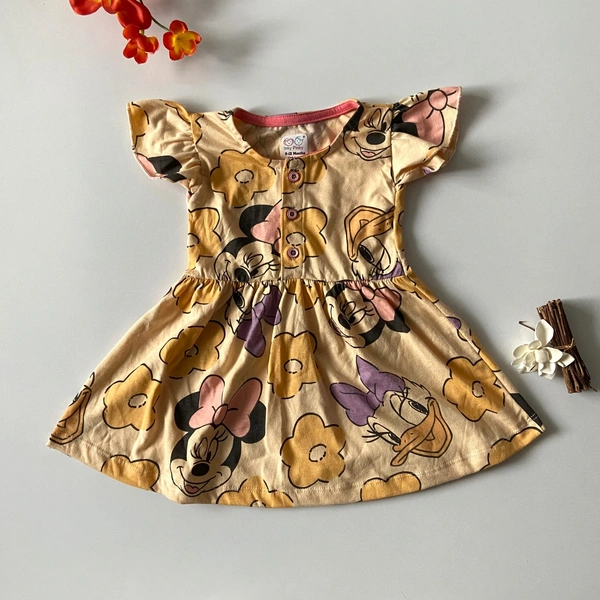 Premium Cotton Printed Organic Cotton Frock for Girls| 100% Cotton| Front Openable Buttons| Peach Brown| SMFCKIY12302