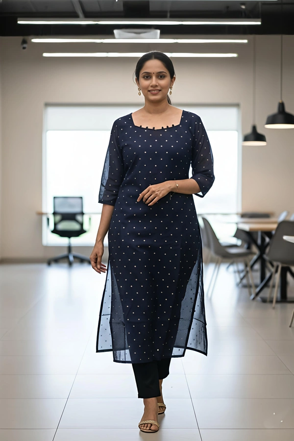 Chnaderi Silk Kurti |3/4th Sleeve | Side Cut kurti| With Lining| Navy Blue | CSK 31501