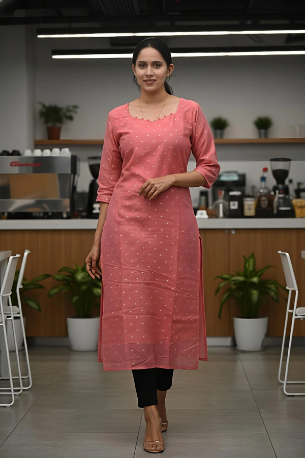 Chnaderi Silk Kurti |3/4th Sleeve | Side Cut kurti| With Lining| Peach | CSK 315004