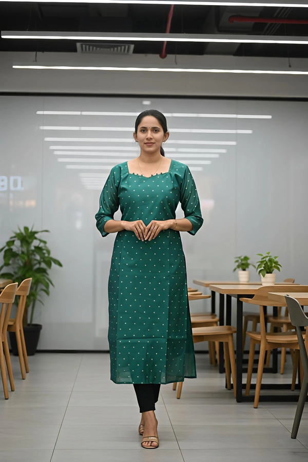 Chnaderi Silk Kurti |3/4th Sleeve | Side Cut kurti| With Lining| Rama green | CSK 315003