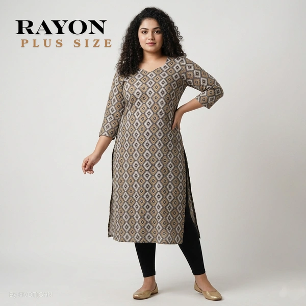 Plus Size |Side Cut Kurti |Liva Certified| Rayon Fabric| Beige | LVP310021