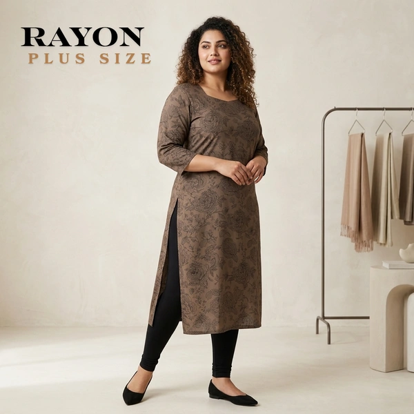 Plus Size |Side Cut Kurti |Liva Certified| Rayon Fabric| Coffee Brown | LVP310013
