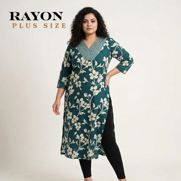 Plus Size |Side Cut Kurti |Liva Certified| Rayon Fabric| Turquoise | LVP310028