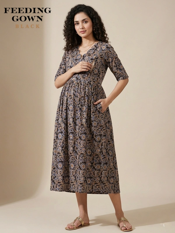 Taj Cotton Feeding Gown – Comfortable and Convenient Maternity Wear
