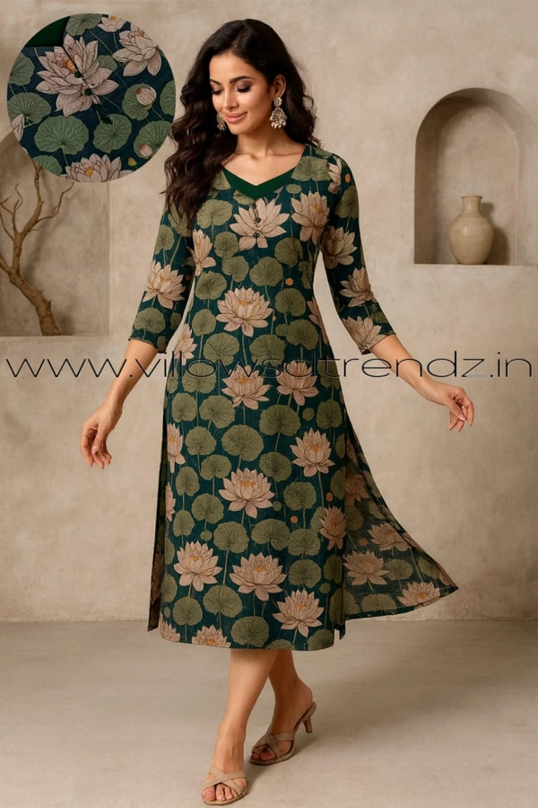 Tissue Silk Kurti with attractive Neck Pattern|Green | TK255091