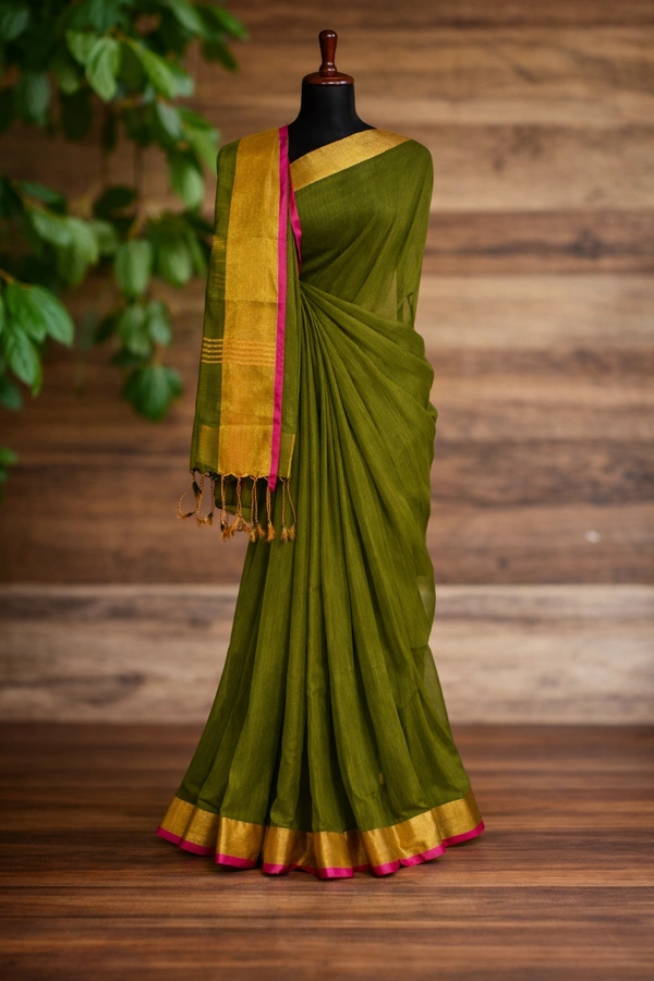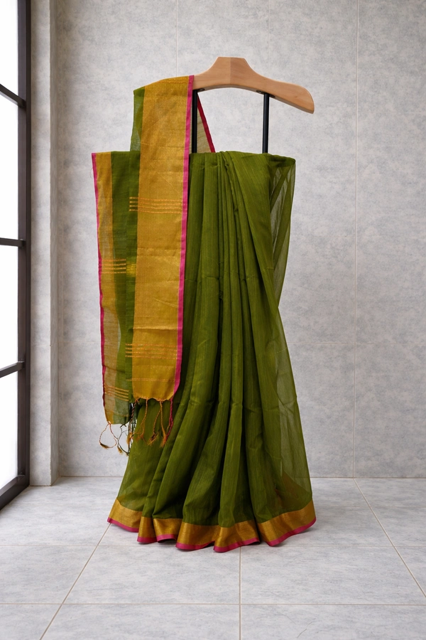 Cotton Silk Saree with Blouse| Rama green | CS38002