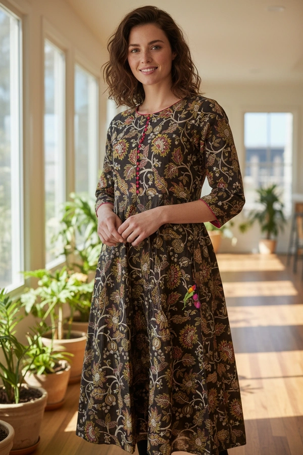 Hand Crafted Organically Painted Kalamkari | Frocks/ Maxi| Black | KF450020