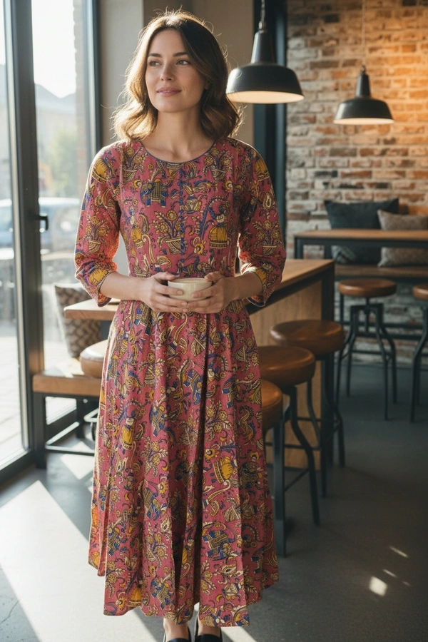 Hand Crafted Organically Painted Kalamkari | Frocks/ Maxi| Pink | KF45004