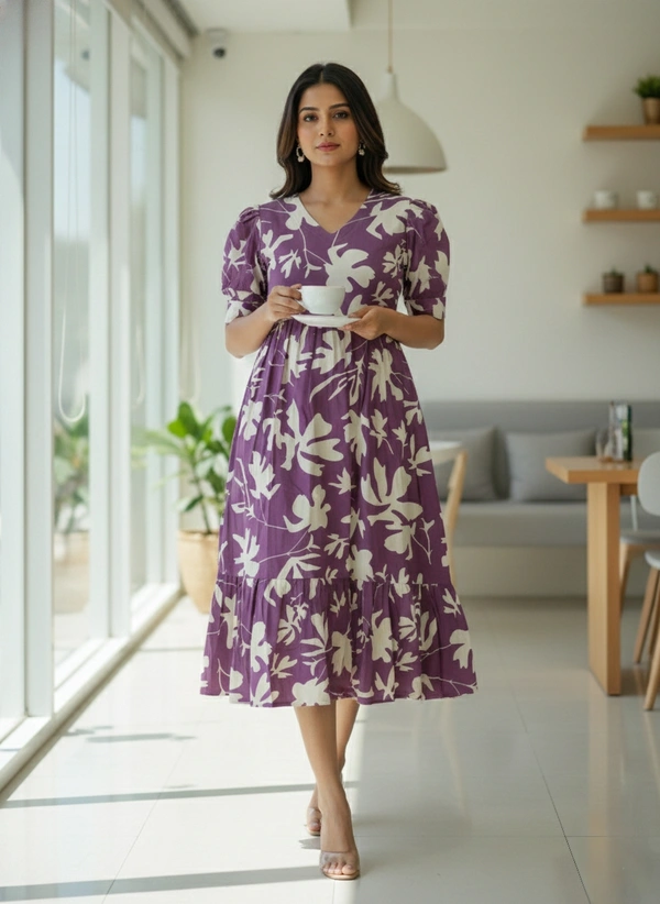 Hand Crafted Original Kalamkari | Frocks/ Maxi| Lavender | KF27002