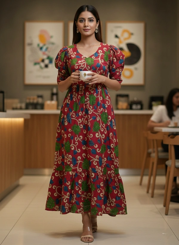 Hand Crafted Original Kalamkari | Frocks/ Maxi| Red | KF450012