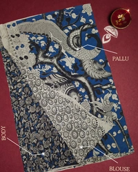 Kalamkari Handcrafted Saree | with Blouse Piece| Blue | KS60001
