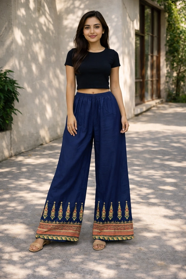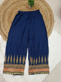 Step into comfort and style with our beautifully crafted palazzo pants. Designed with a relaxed silhouette and flowy fabric, these pants offer the perfect blend of sophistication and ease. Whether you're heading to work, a casual outing, or a festive gathering, they drape gracefully to enhance your look.