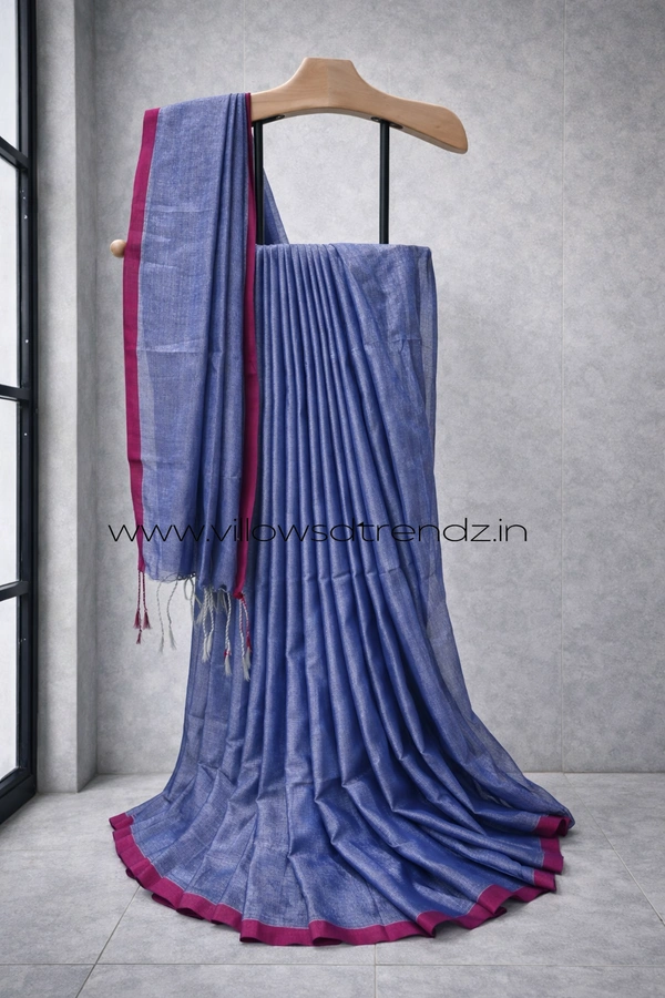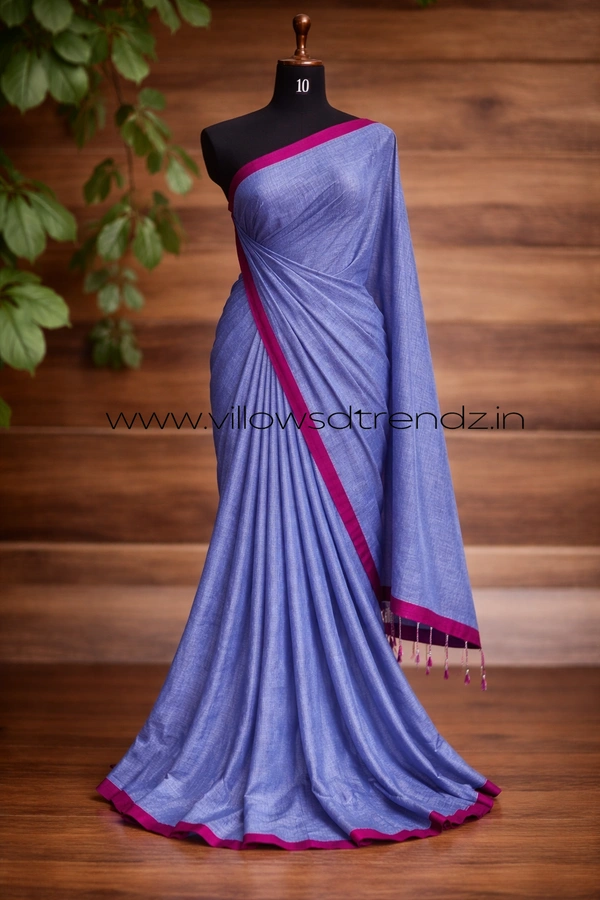 Mul Tissue Saree With Tassels | Soft Breathable | Light Weight | Blue | MT440011