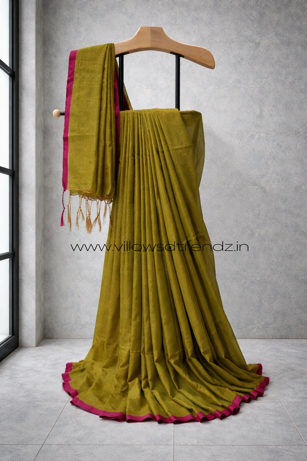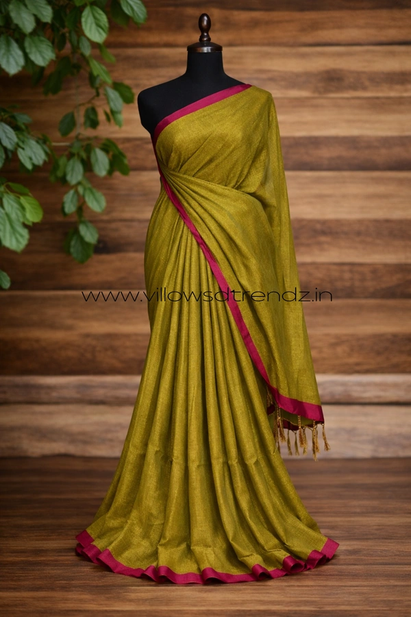Mul Tissue Saree With Tassels | Soft Breathable | Light Weight | Green | MT44008