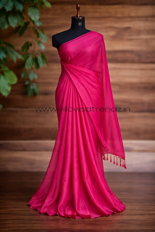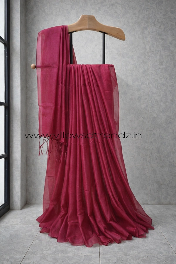 Mul Tissue Saree With Tassels | Soft Breathable | Light Weight | Pink | MT44006