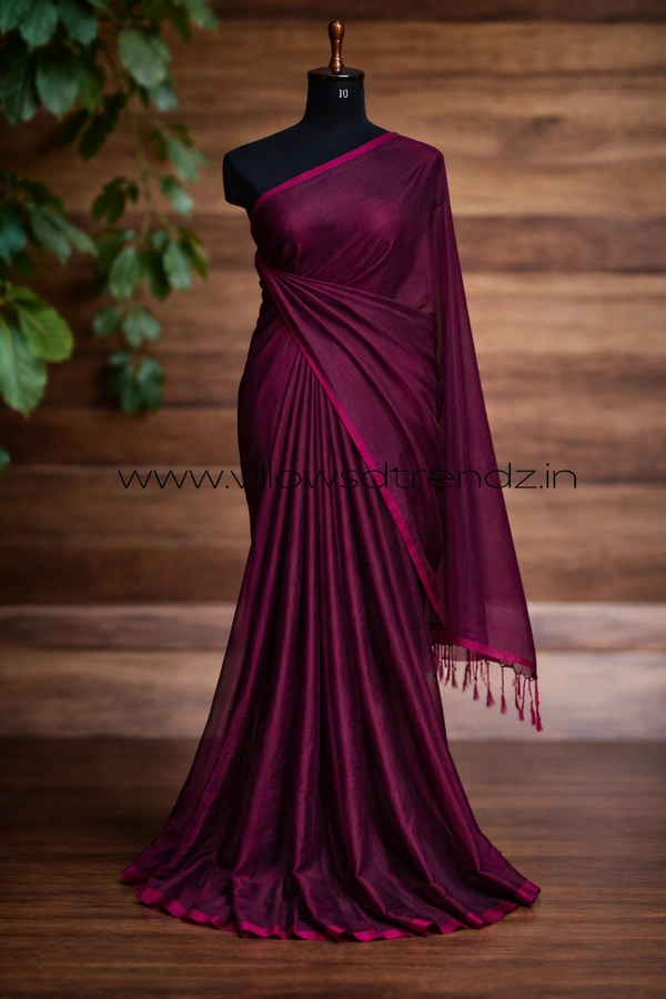 Mul Tissue Saree With Tassels | Soft Breathable | Light Weight | Purple | MT440010