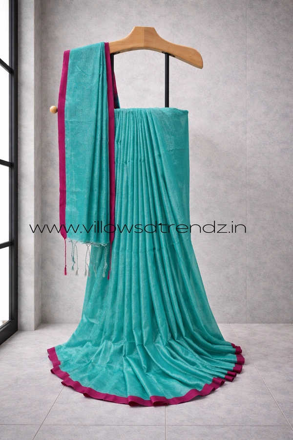 Mul Tissue Saree With Tassels | Soft Breathable | Light Weight | Sky blue | MT440014