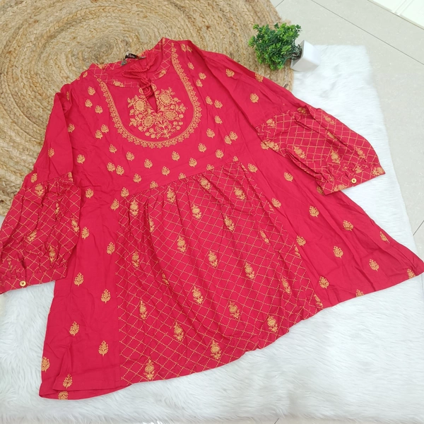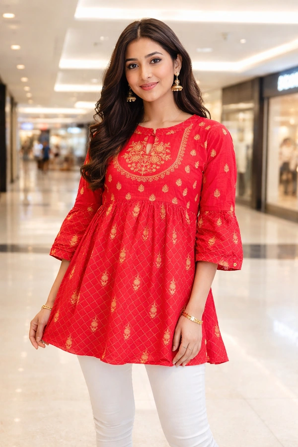 Featuring a flattering fit and eye-catching design, this short kurti pairs perfectly with jeans, leggings, or palazzos — making it ideal for casual outings, office wear, college, or everyday styling.