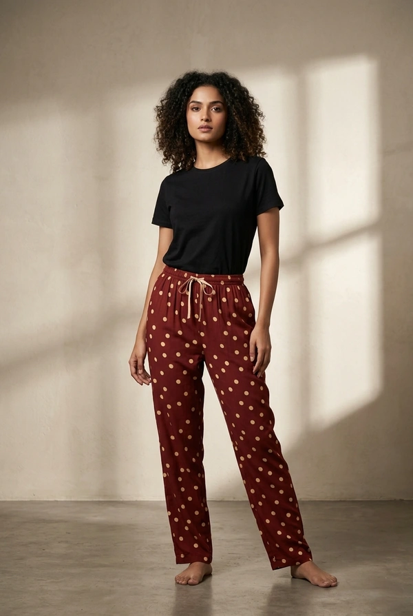 Womens Pyjama Full Pant | Cotton |Night Pant | Maroon | PY80018
