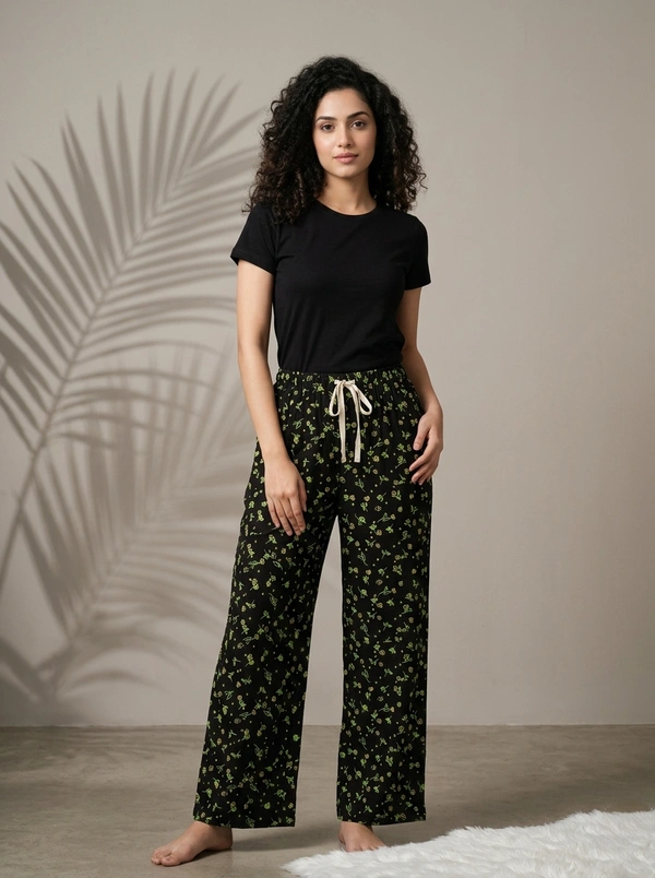 Womens Pyjama Palazzo Full Pant | Cotton |Night Pant | Black | PYP850011