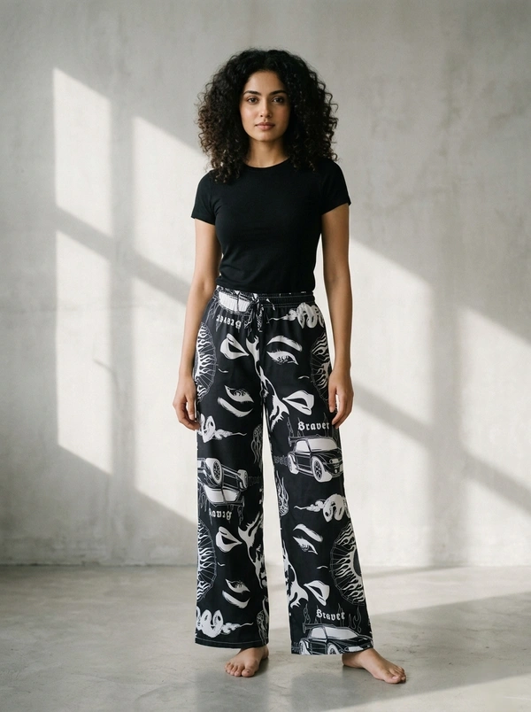 Womens Pyjama Palazzo Full Pant | Cotton |Night Pant | Black | PYP850018
