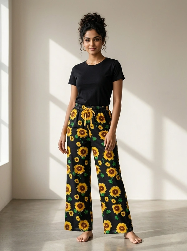 Womens Pyjama Palazzo Full Pant | Cotton |Night Pant | Black | PYP85006