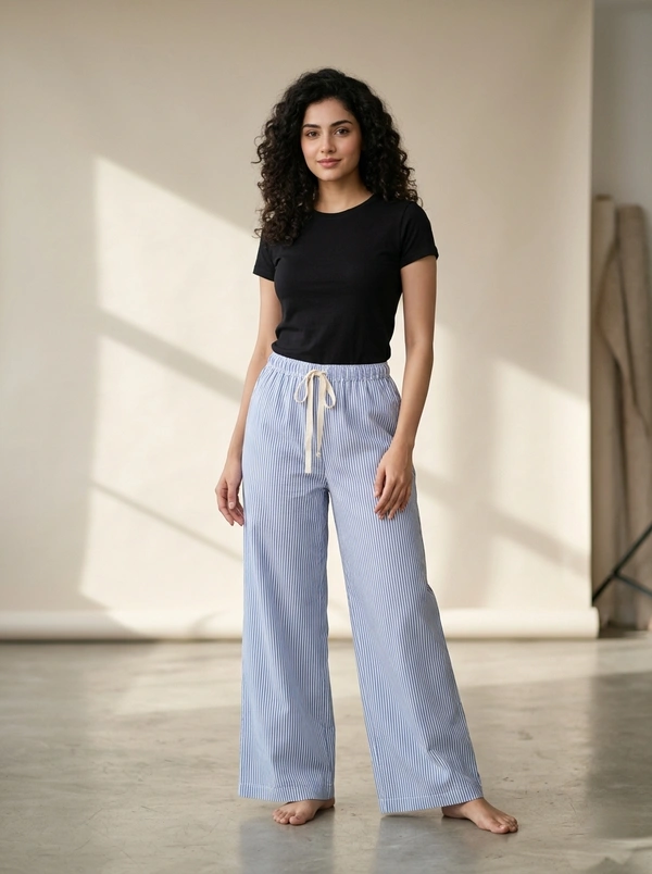 Womens Pyjama Palazzo Full Pant | Cotton |Night Pant | Blue | PYP850017