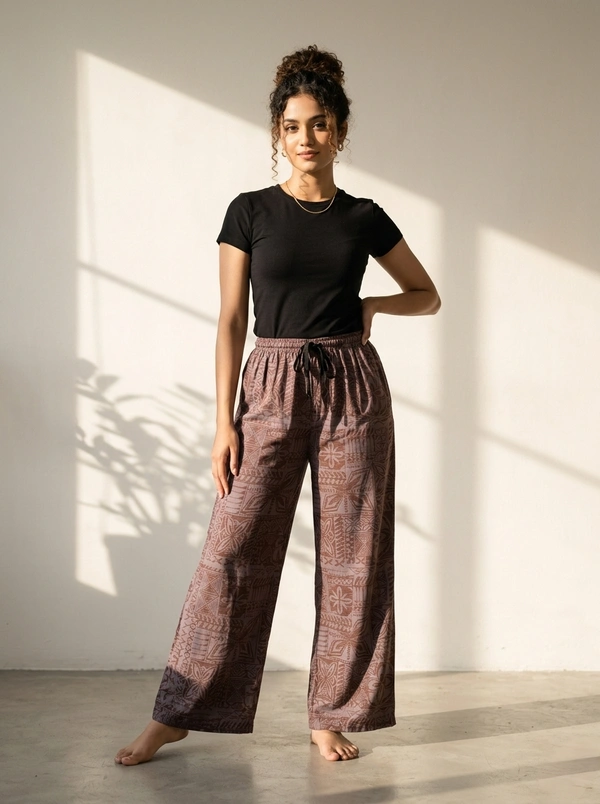 Womens Pyjama Palazzo Full Pant | Cotton |Night Pant | Brown | PYP850019