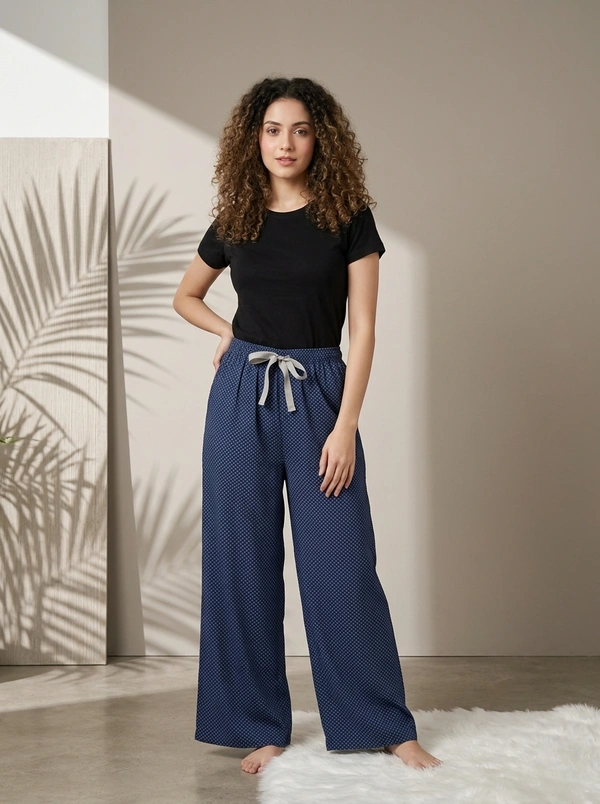 Womens Pyjama Palazzo Full Pant | Cotton |Night Pant | Navy Blue | PYP85007