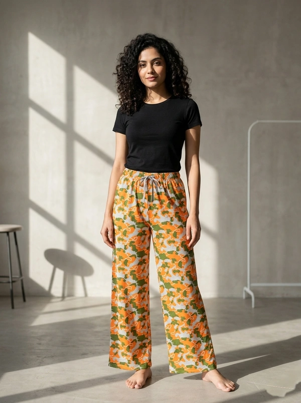 Womens Pyjama Palazzo Full Pant | Cotton |Night Pant | Orange | PYP85004