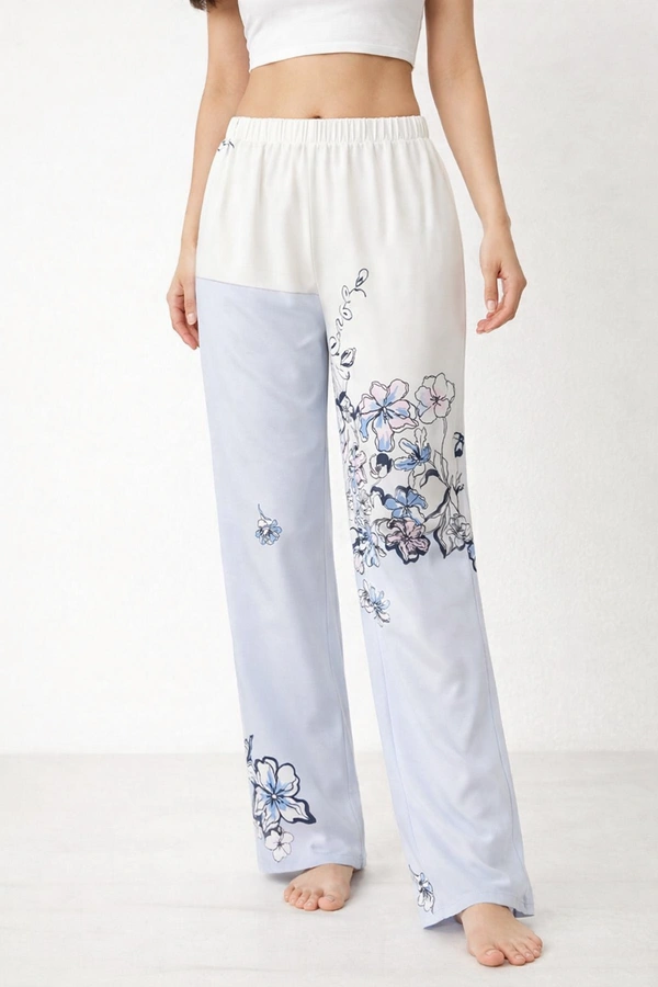 Womens Pyjamas Pants |Viscose Cotton |White with Sky blue | PY85004