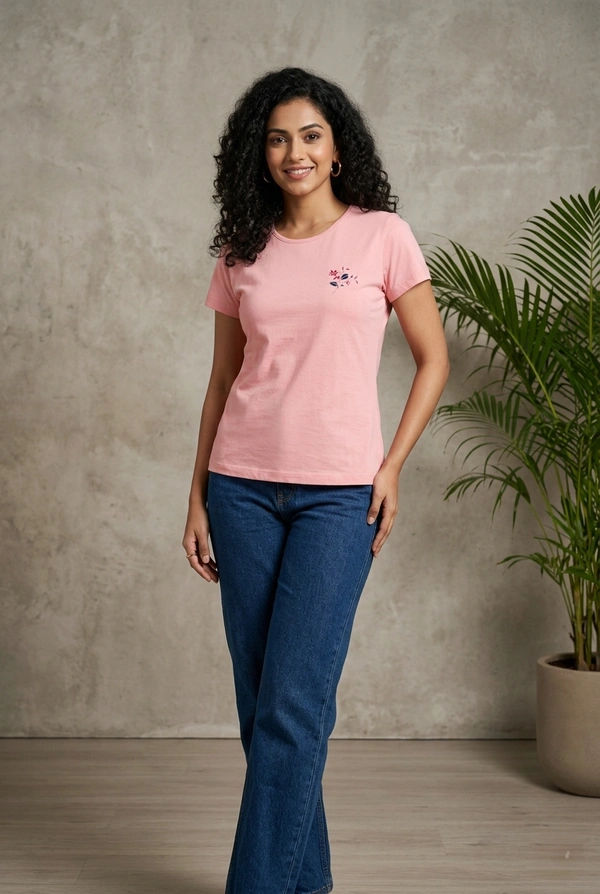 Women's T-shirt|100% Cotton| Half Sleeve| Peach | WT80010