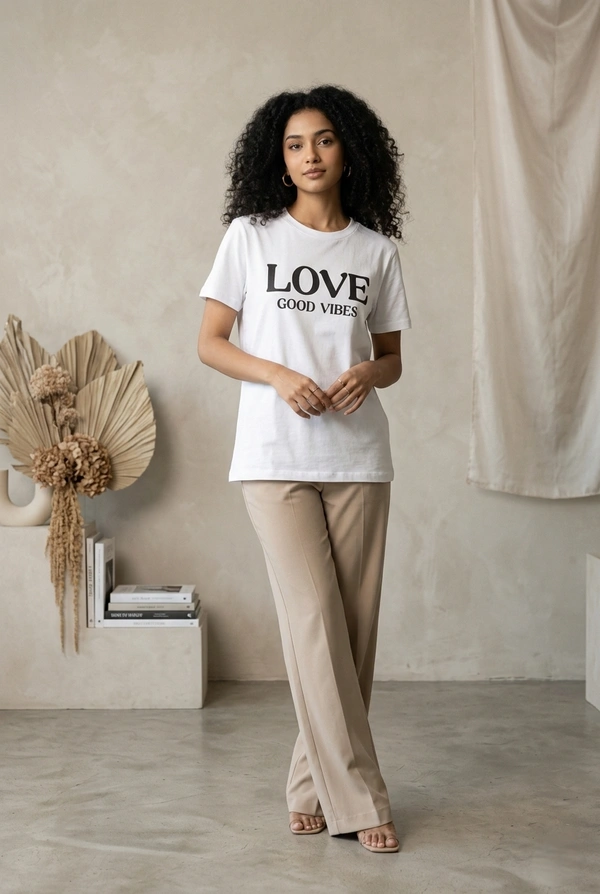 With a modern fit and versatile design, it pairs perfectly with jeans, leggings, or skirts—making it a must-have staple for your wardrobe. Whether you're heading out casually or lounging at home, this t-shirt delivers both comfort and style.